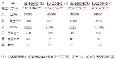 注:設備型號帶(K) 的表示設備內置高壓空氣氣源。不帶(k)的為外接空壓機氣源。